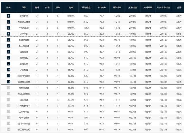 • CBA最新排名:4队保持不败,1队成冷门,北京3连胜领跑,辽篮第3